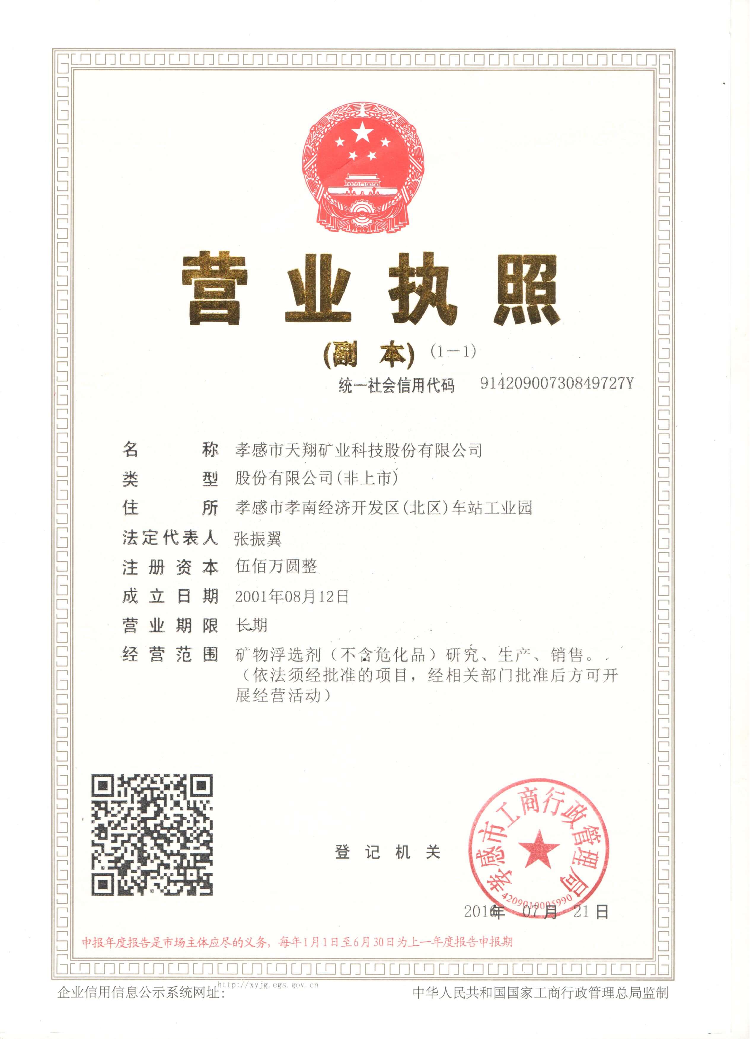 孝感市天翔礦業科技股份有限公司是一家專業從事氧化礦浮選藥劑研究開發和生產的企業。成立于1996年,經過20多年的研發與生產實踐,產品覆蓋磷礦、鋰礦、螢石礦、鎢礦、錫礦、鈦鐵礦、鋁土礦、稀土礦等多礦種的浮選藥劑,在業內享有一定知名度。一份耕耘,一份收獲,多年的積累一定會產生行業認可的高端產品。公司將會提供給礦山高效、有競爭力的產品,會與礦山企業一道,共同為行業發展作出優秀的貢獻。
